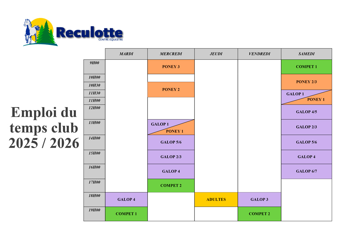 Les reprises poney sont constituées d’un maximum de 8 cavaliers afin d’optimiser la cohésion pédagogique, pour les débutants à cheval les groupes peuvent aller jusqu’à dix.